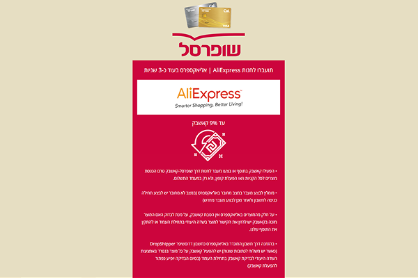 בכדי לזכות אתכם בקאשבק CASHBACK אתם נדרשים להתחיל את תהליך הקנייה באתר שופרסל-קאשבק ולשלם עם כרטיס אשראי שופרסל כאל, במידה ולא תעברו דרך שופרסל-קאשבק לפני ההזמנה, לא תהיו זכאים לקאשבק.
